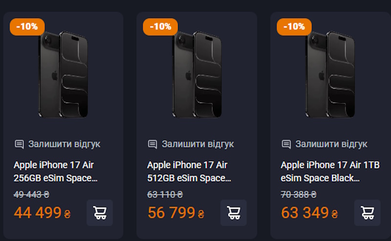 Залишкова вартість iPhone традиційно вища, ніж у більшості конкурентів, але колір все одно відіграє роль. Аналіз попередніх моделей показує, що класичні відтінки втрачають у ціні повільніше. Для iPhone 17 Air у чорному кольорі можна очікувати стабільнішу динаміку при перепродажі або Trade-in. На українському ринку це особливо помітно: